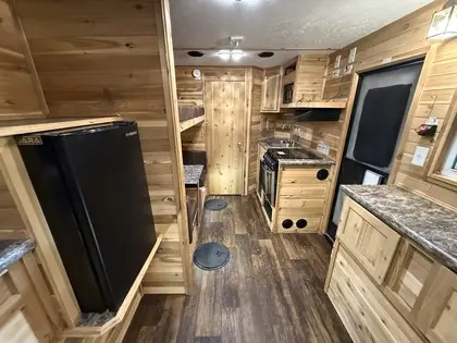 Cedar lined interior with 2 bunk areas – 1 being a power lift bunk