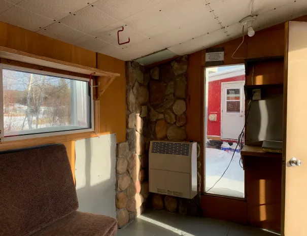 Sugar Shack #2 is a cozy shack with U-shaped bench seating that converts to a King size bed. There’s a nice stonework accent in one corner and a window looking out so you can see your lines outside.