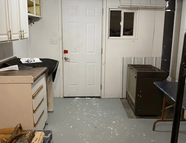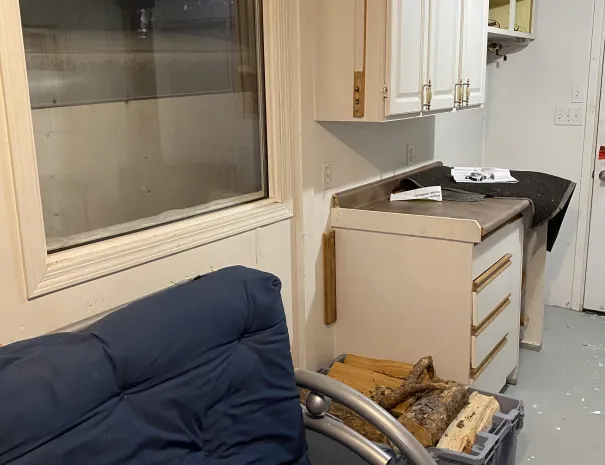 Added a better futon and new bunk bed. Kitchen cabinets and a wood stove.