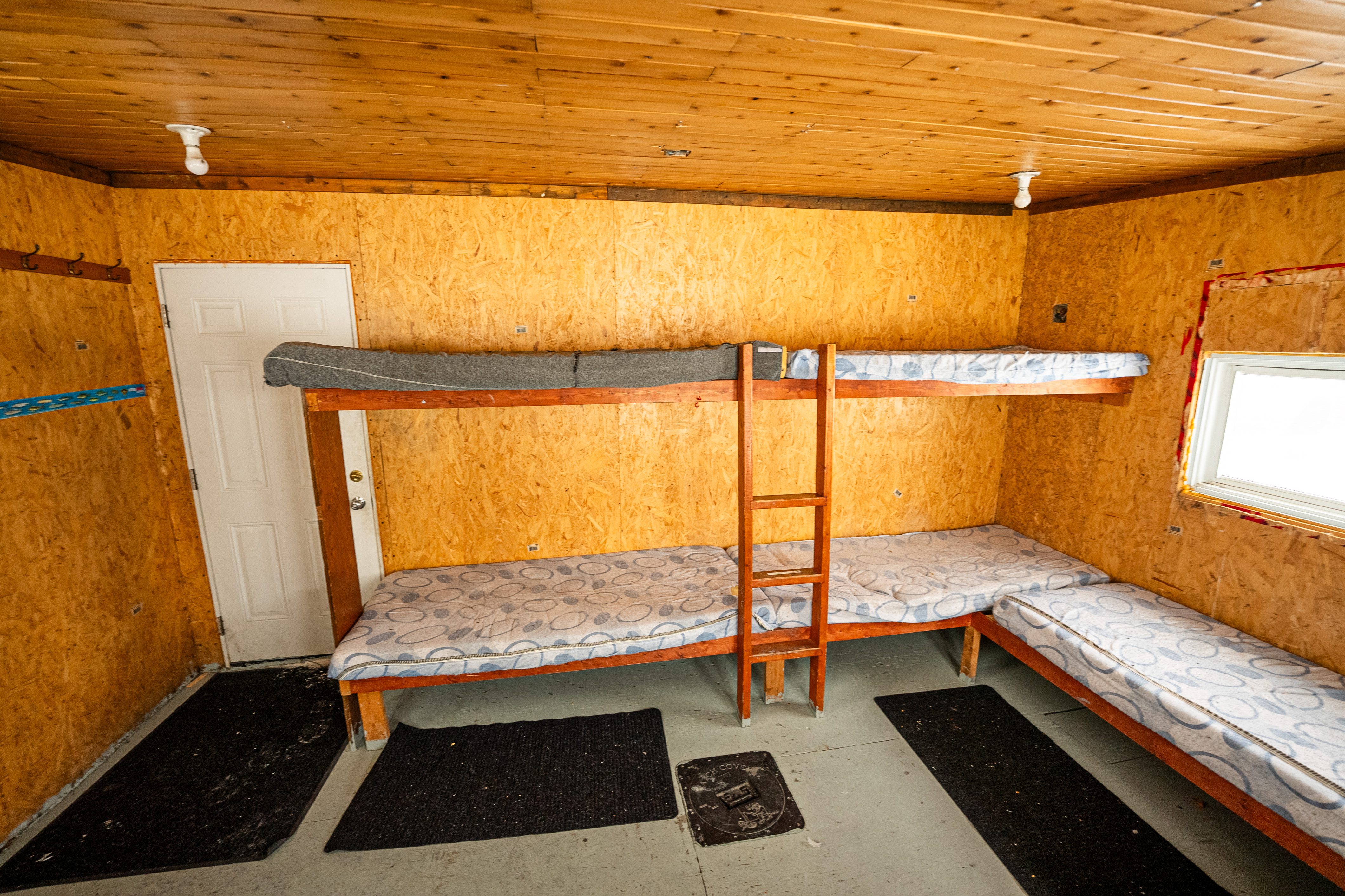 The wood stove was upgraded to a new propane heater, giving more entry and floor space. The cornered sleeping set up allows for maximum room.